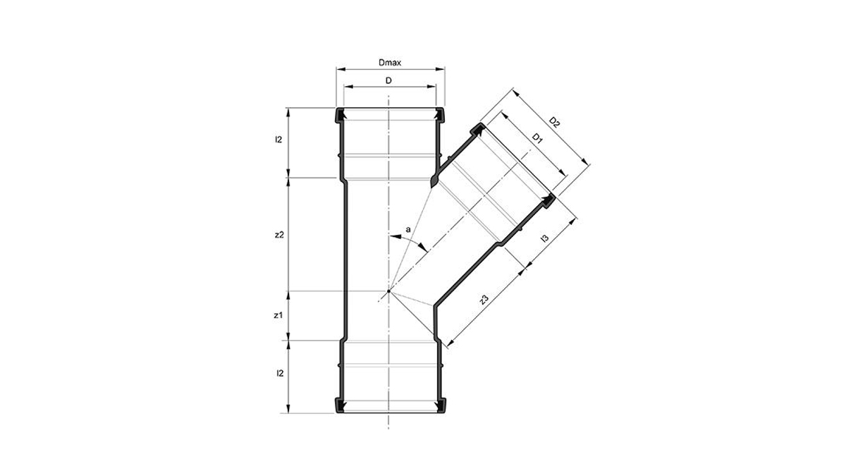 Hem VA Markavloppssystem Släta markrör och delar 110-400 mm, PP Mark Grenrör 45°/90°, PP 3 muffar Mark Grenrör 110/110 45°, PP 3 muffar